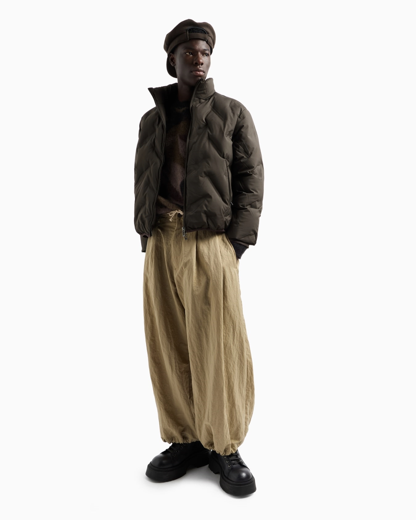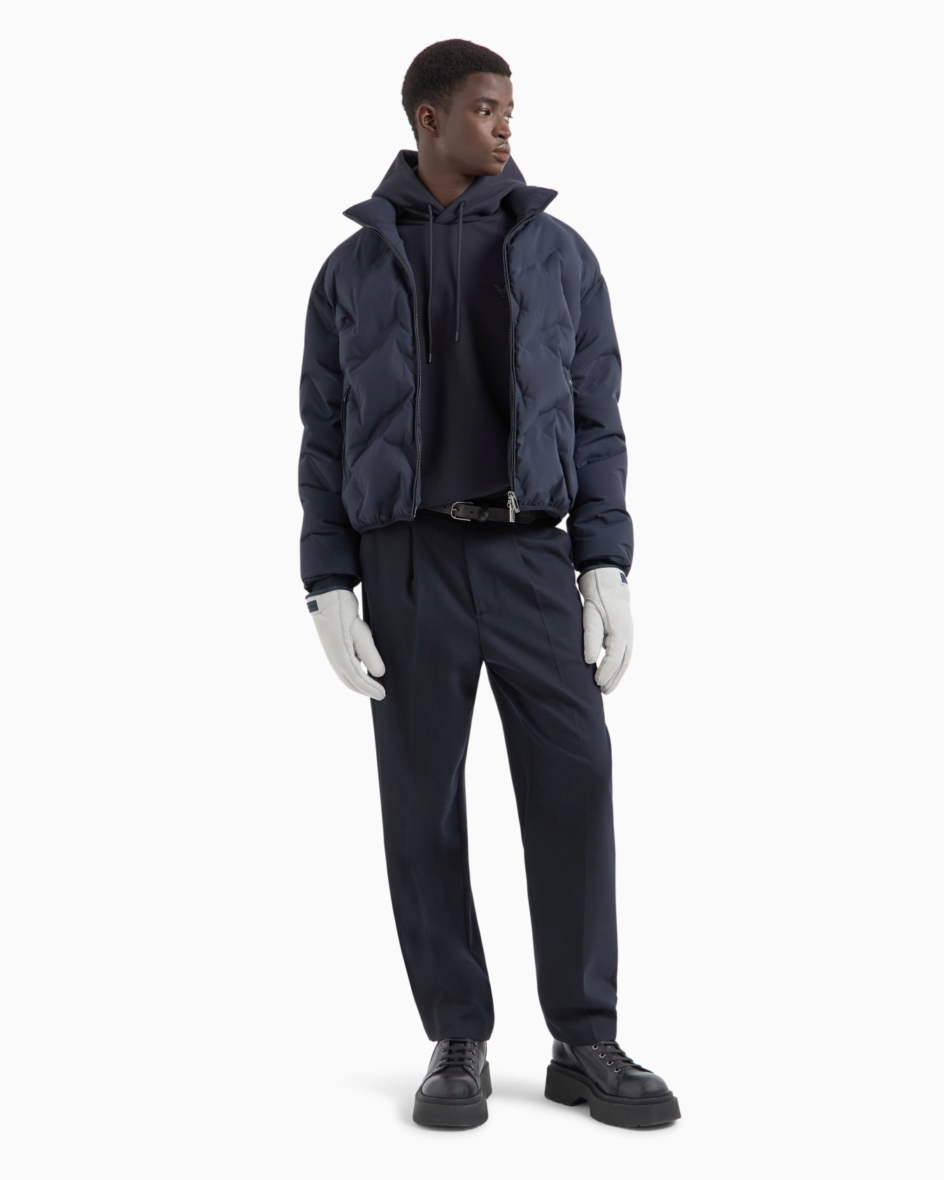 利落短款衣身与立领相结合,上身尽显挺拔身姿,让人眼前一亮