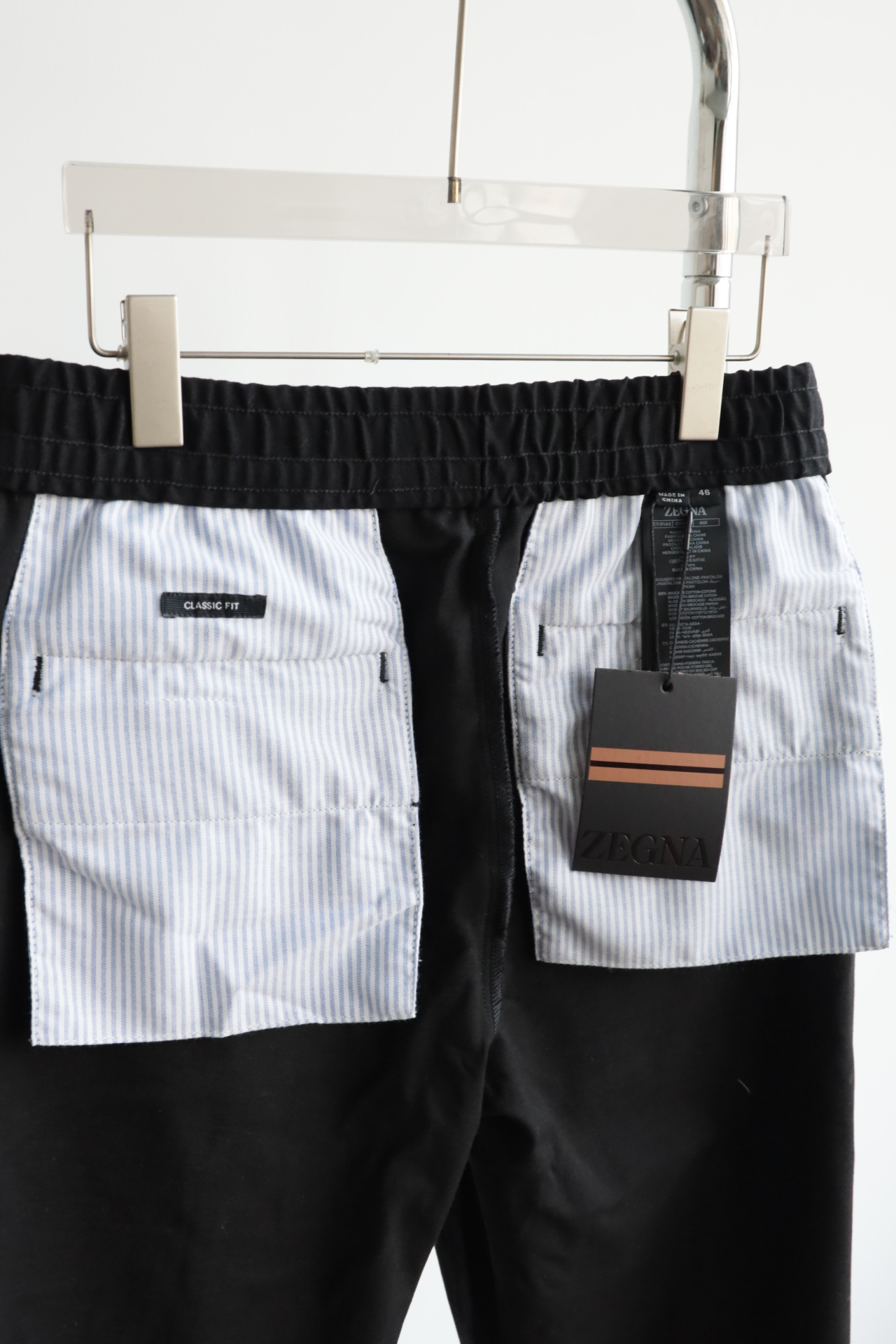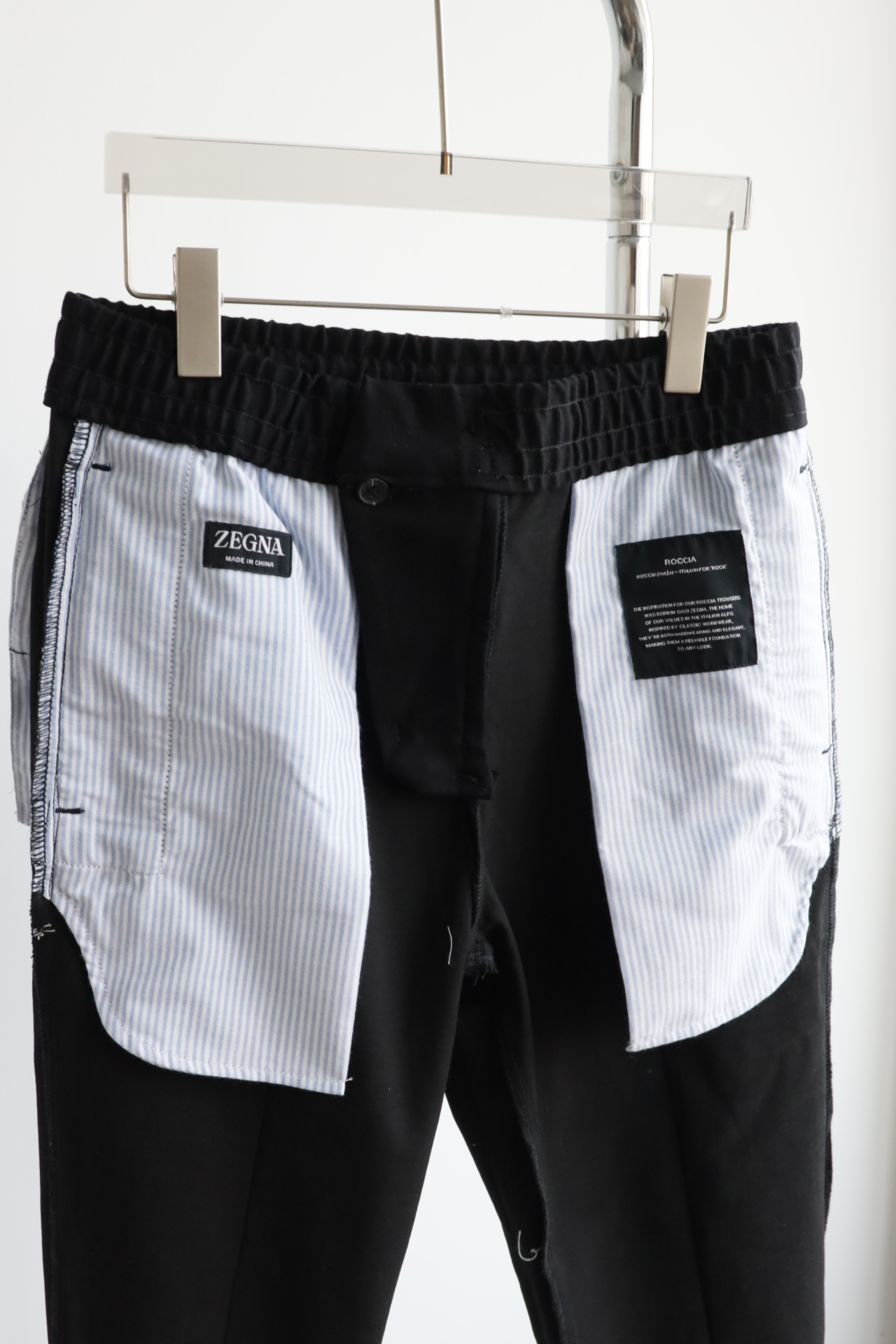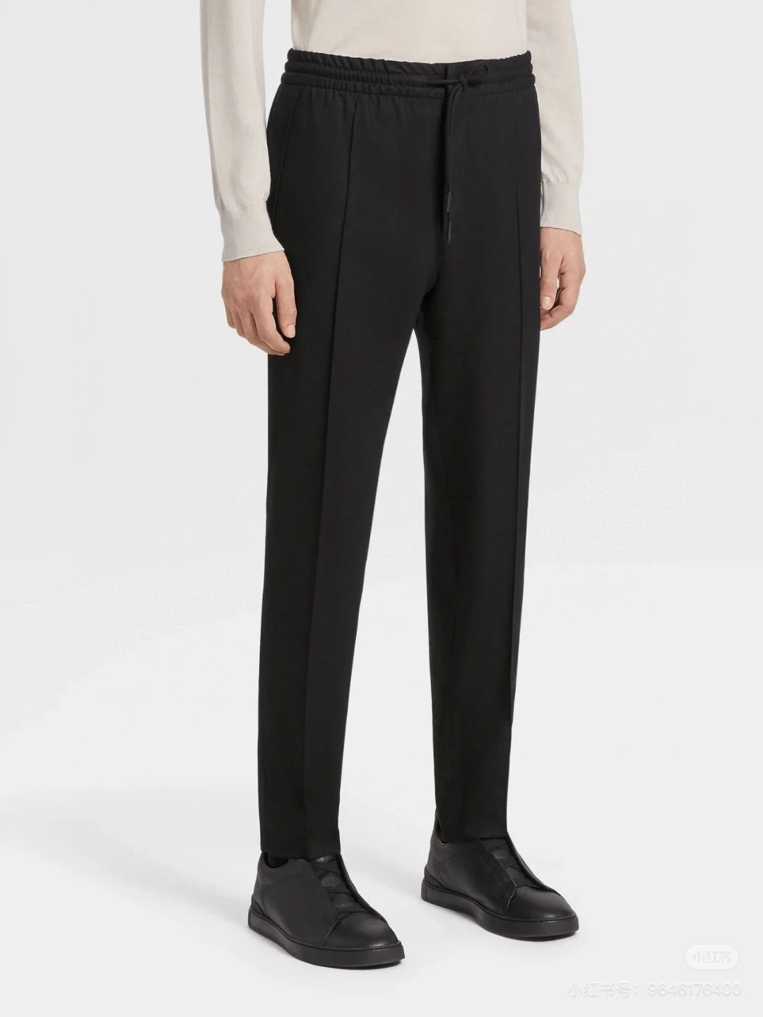 褶缝休闲长裤,裤子中间有一条固定的褶缝,上身穿会比较有形,休闲商务的感觉,配有弹力的改良西裤腰头,抗皱很不错的质感