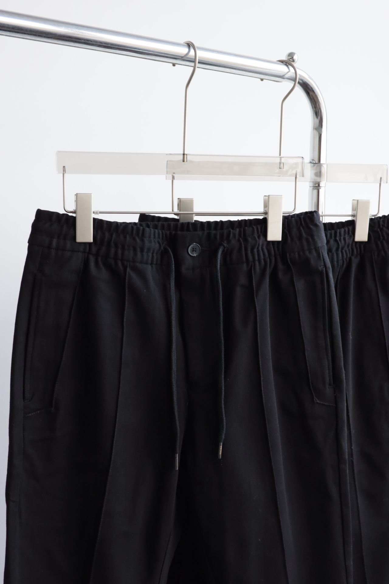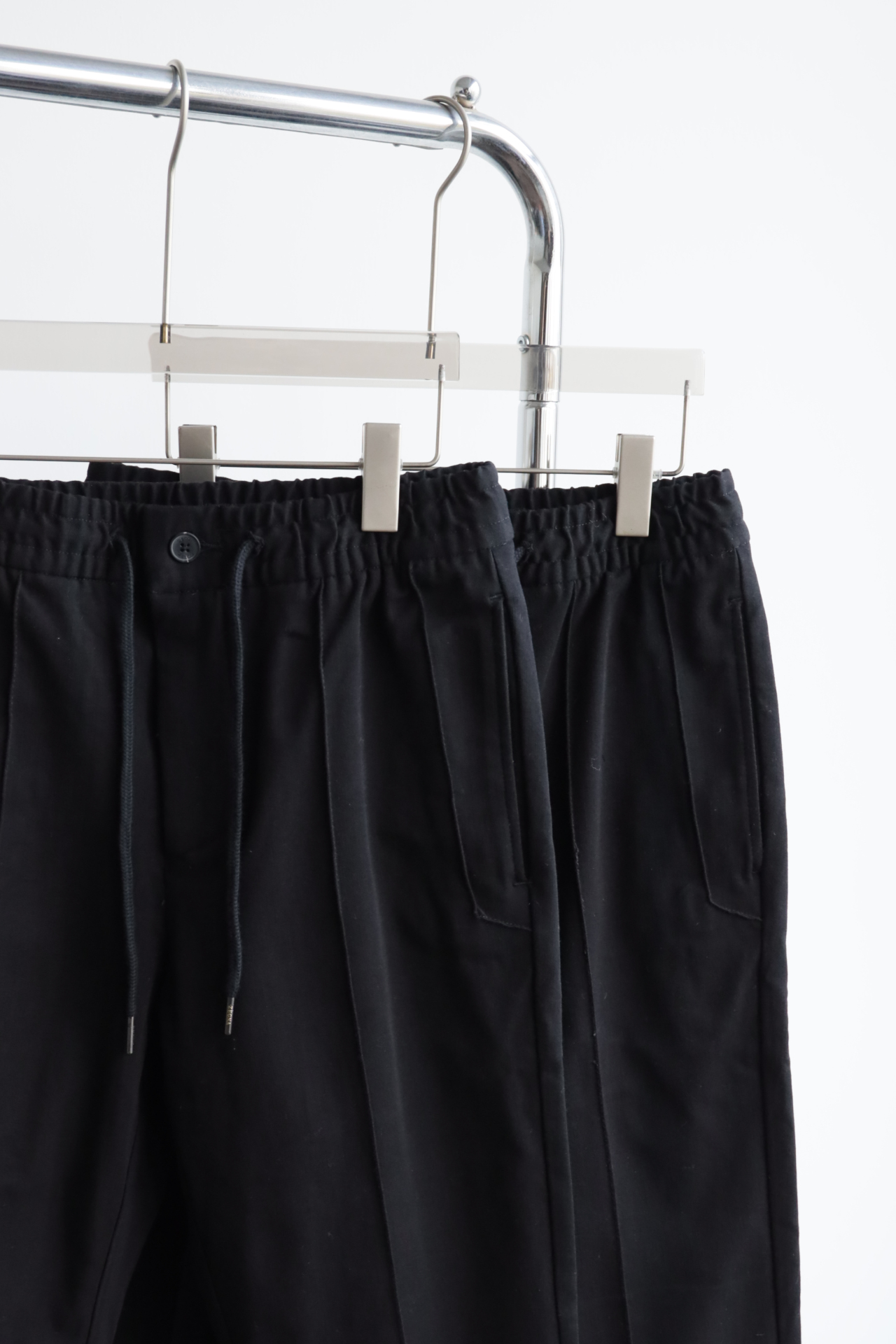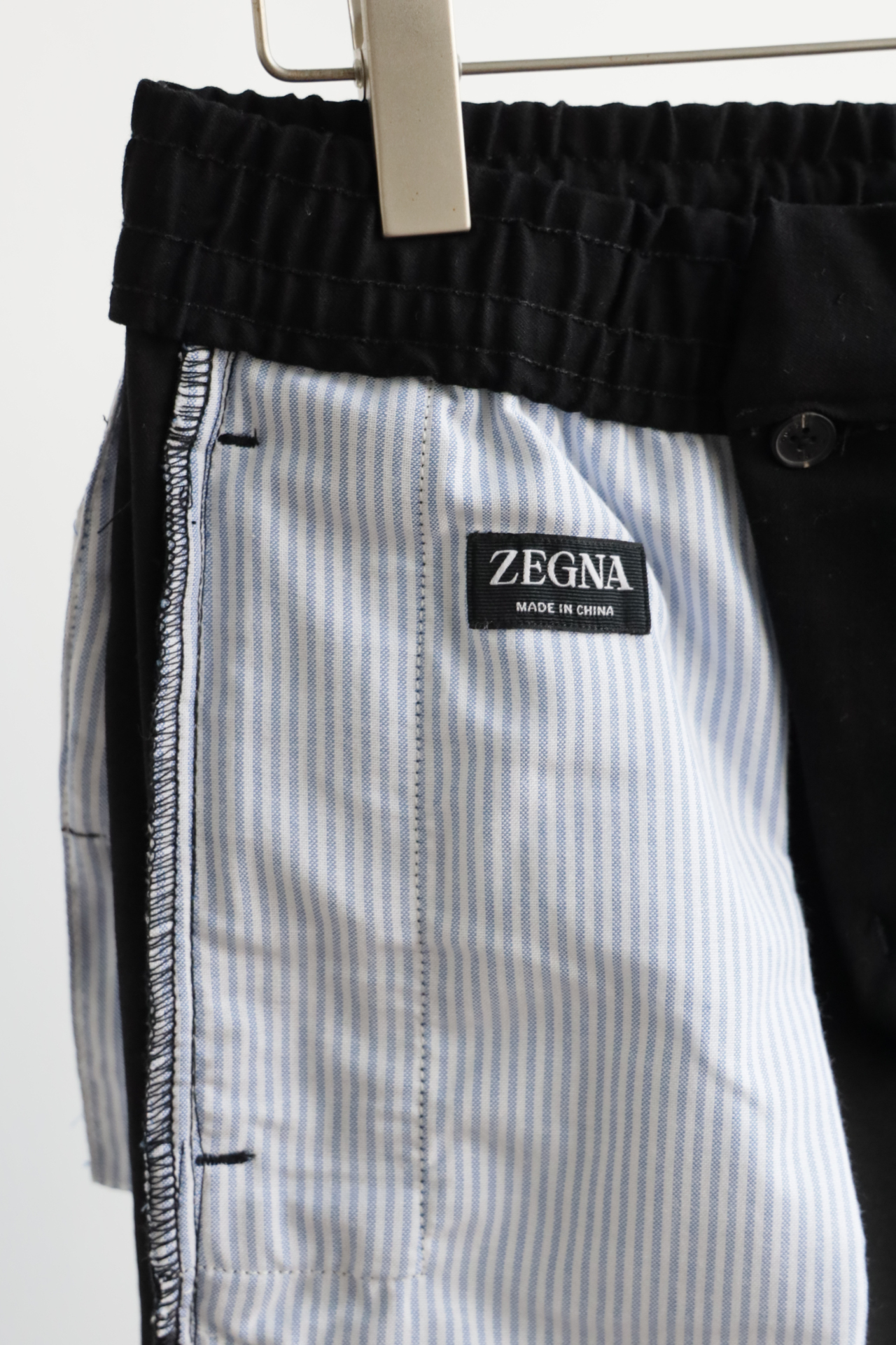 褶缝休闲长裤,裤子中间有一条固定的褶缝,上身穿会比较有形,休闲商务的感觉,配有弹力的改良西裤腰头,抗皱很不错的质感