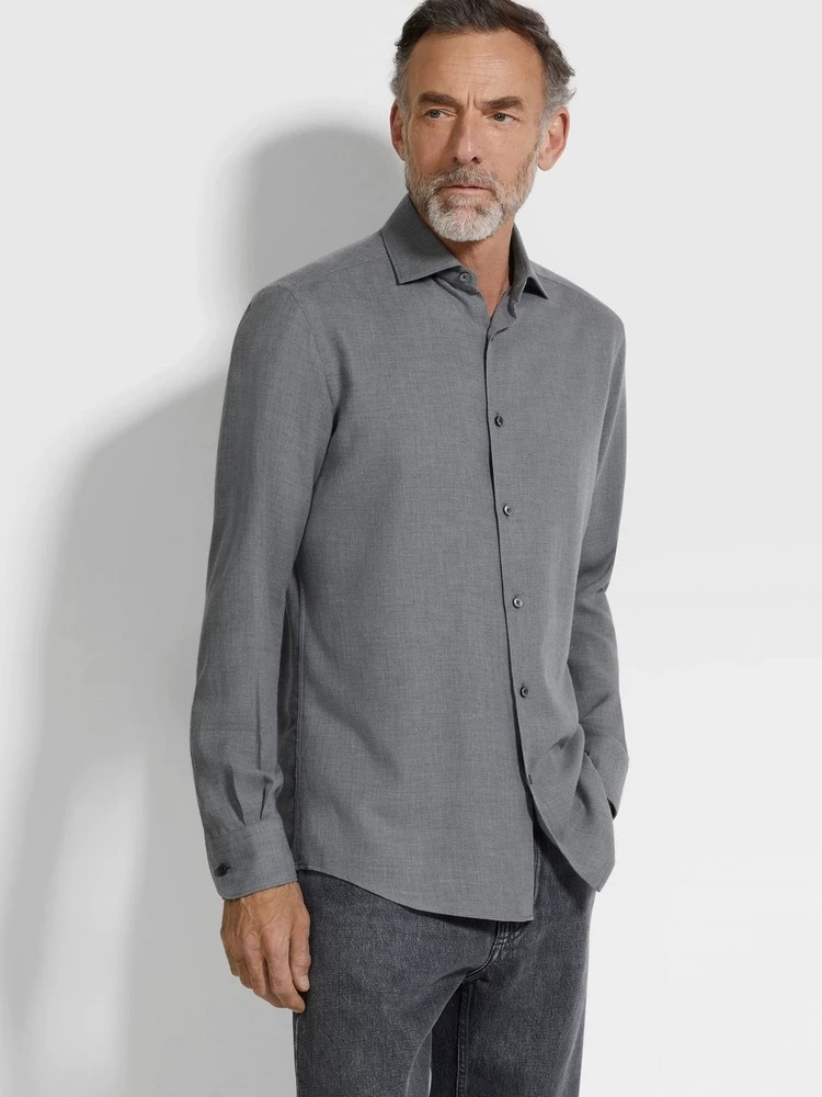 杰尼 厚双纱平纹面料面料针织衬衫