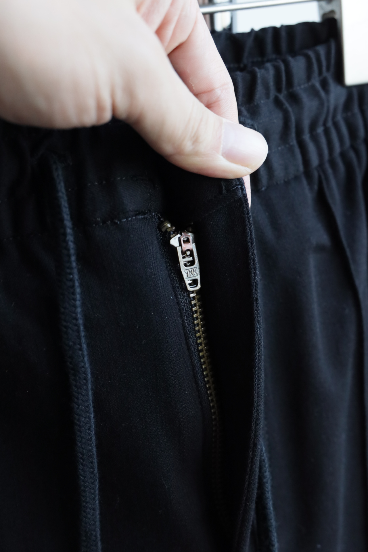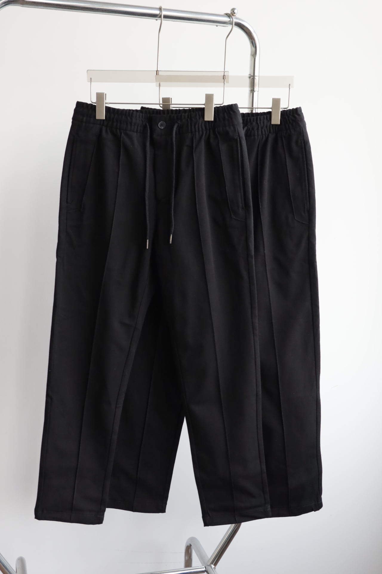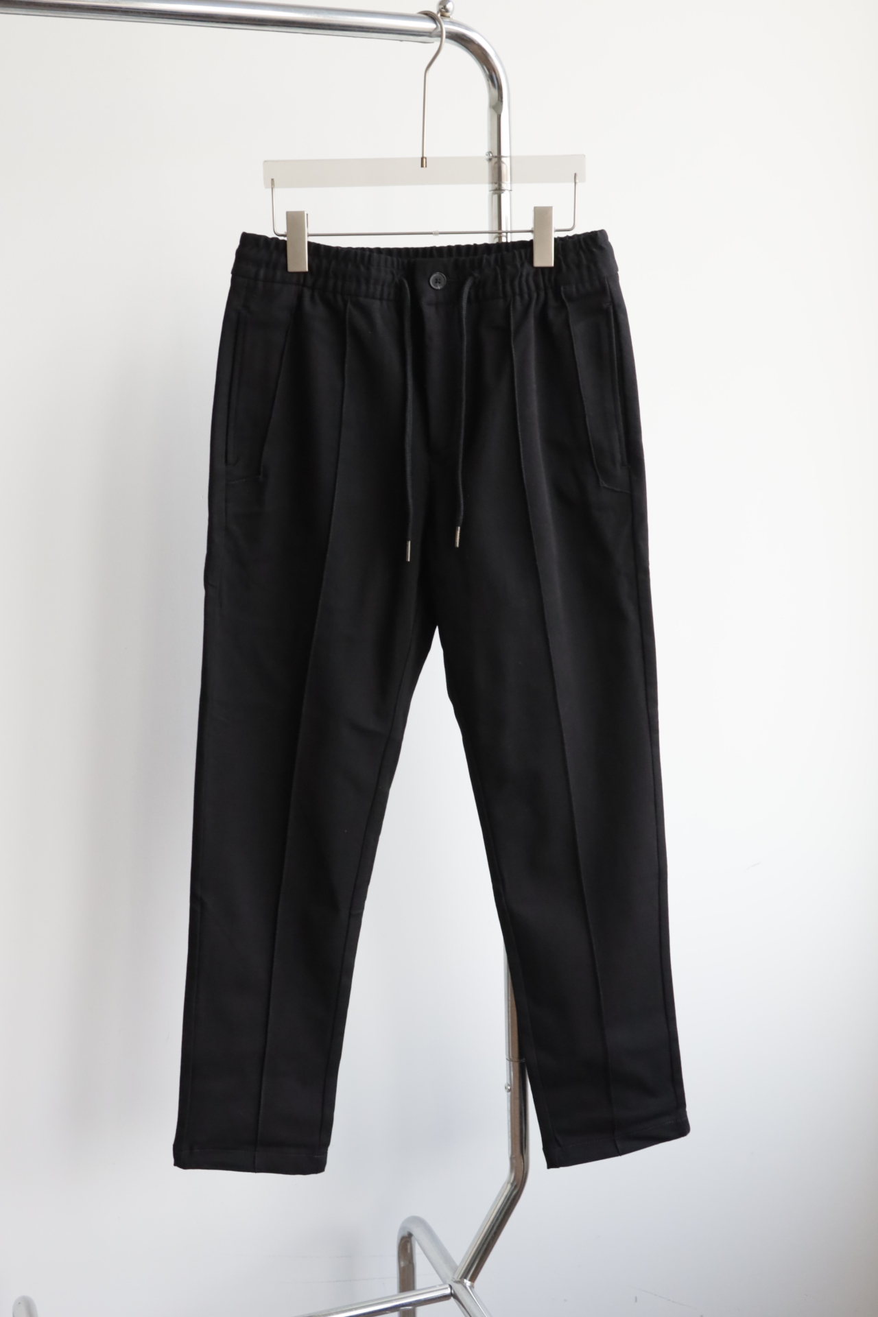 腰间有弹力,还有抽绳可调节松紧,小直筒的微宽松版型