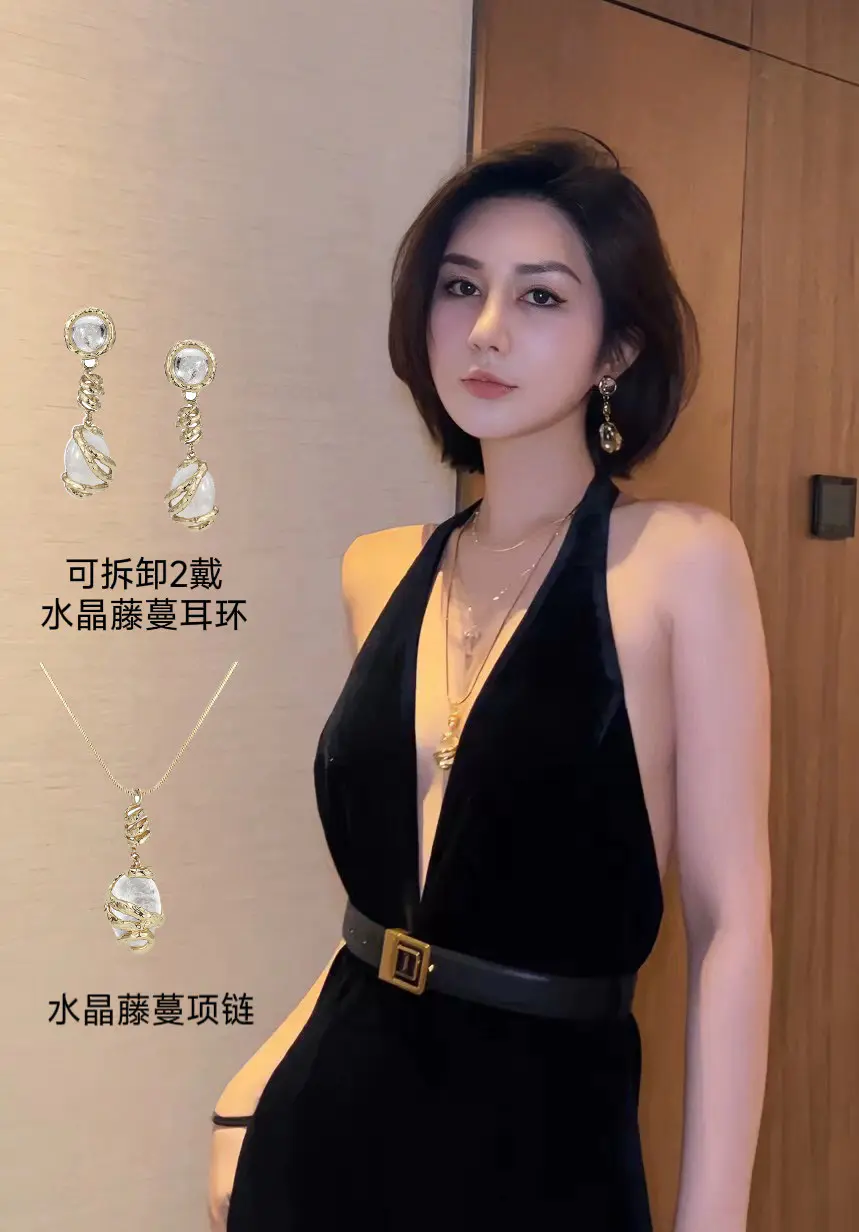 耳环的耳坠部分做了可拆卸的设计,耳坠拆卸下来也可以搭配链条作为吊坠佩戴,一款多戴的设计可以满足不同搭配需求。