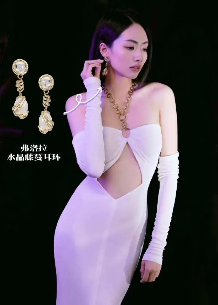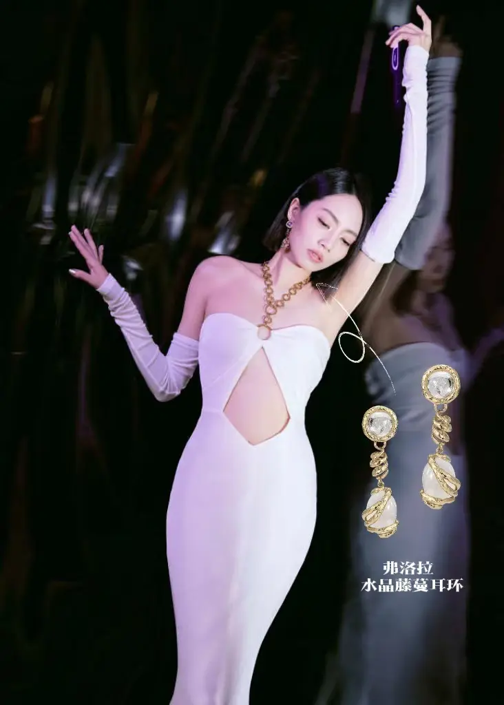 一片洁白之中,绽放着绚烂的光#歌手刘惜君 #弗洛拉水晶藤蔓耳环