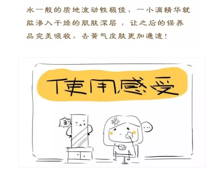 作为脸部导入精华使用,洁面后使用润燥精华,注意要先在手心里预热一下,然后手心里抹开,再上脸,上脸的时候从下巴至额头,边抹边做提拉的动作。