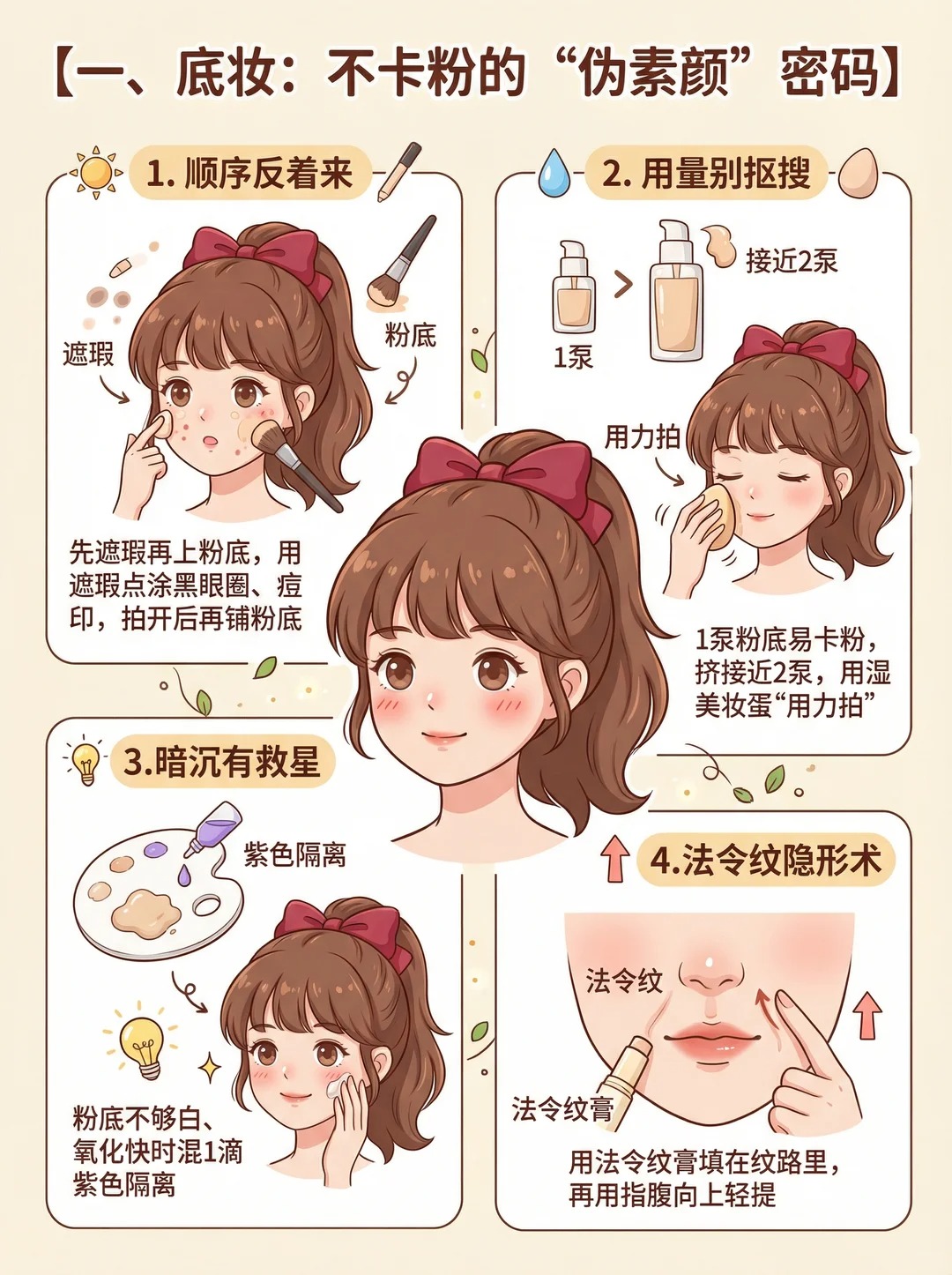 底妆别再厚涂啦🤦♀️换个顺序 + 手法,瑕疵直接隐形,还能扒脸到下班都不脱~