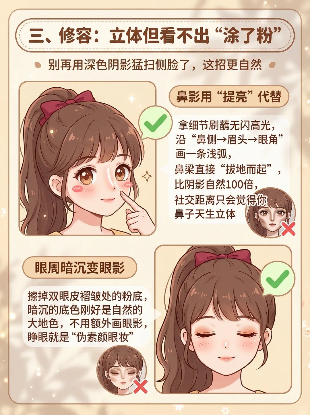 换个思路提亮,鼻子立体得像天生的,社交距离根本看不出涂了粉🤫