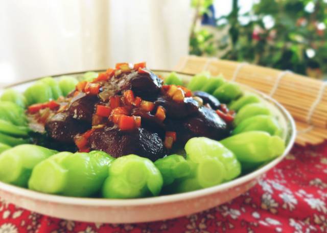 主料由干香菇和青菜组成。口感软糯,菌类特殊的清香与青菜交融,清淡却不失回味!