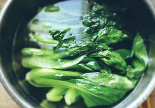 1、这道菜比较简单,需要注意的是焯菜时加入一点食用油,菜的颜色会更好;