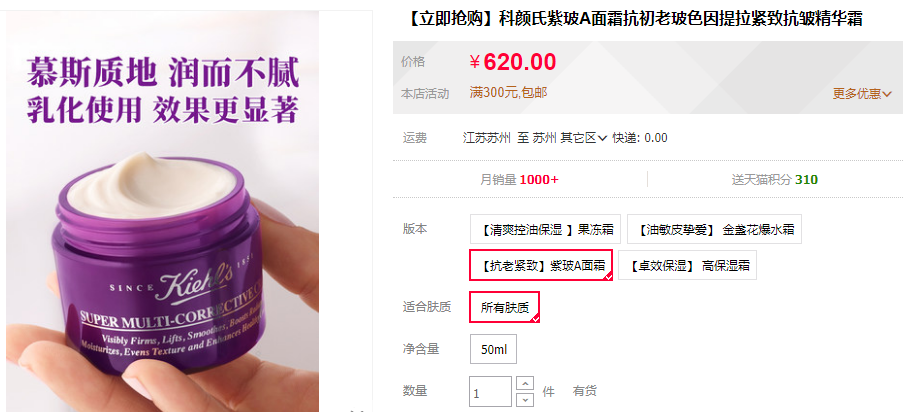 所以今天小编就给大家带来了抗初老神器——【科颜氏紫玻A面霜】。