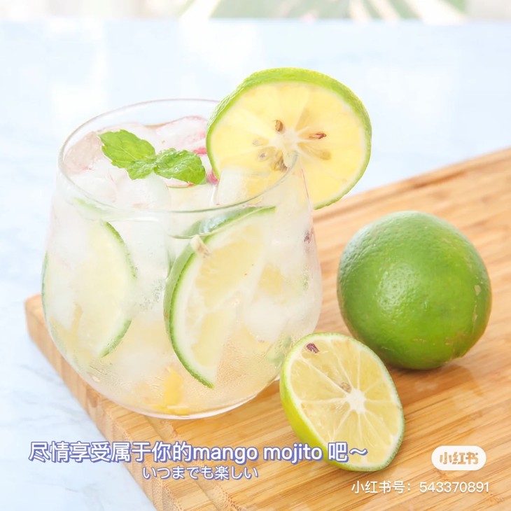 三只松鼠芒果干🥭、朗姆酒🍾、苏打水、糖浆、草莓🍓、青桔、薄荷🌱