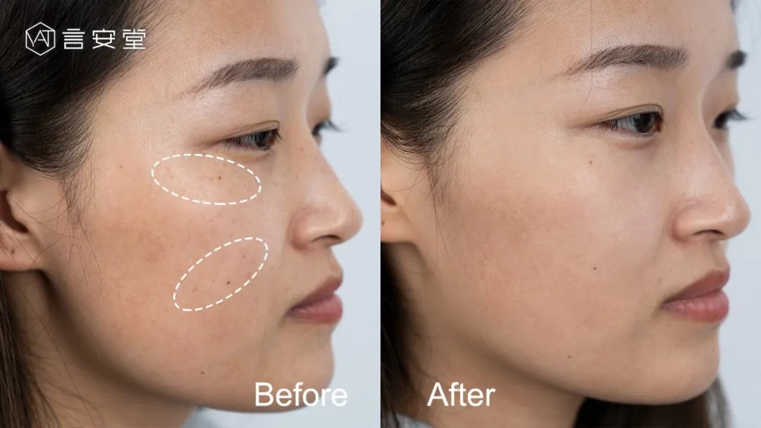 ❸ 再通过喷墨打印机的技术用色料将色斑区域的颜色调节成正常颜色,从而实现遮瑕提亮的效果。