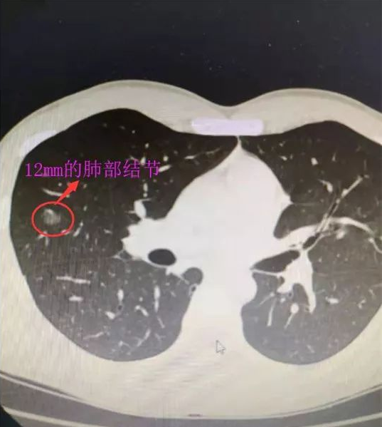 CT扫描结果让医生都紧张,小伙子两肺都有结节,其中右中肺上的结节有12mm。
