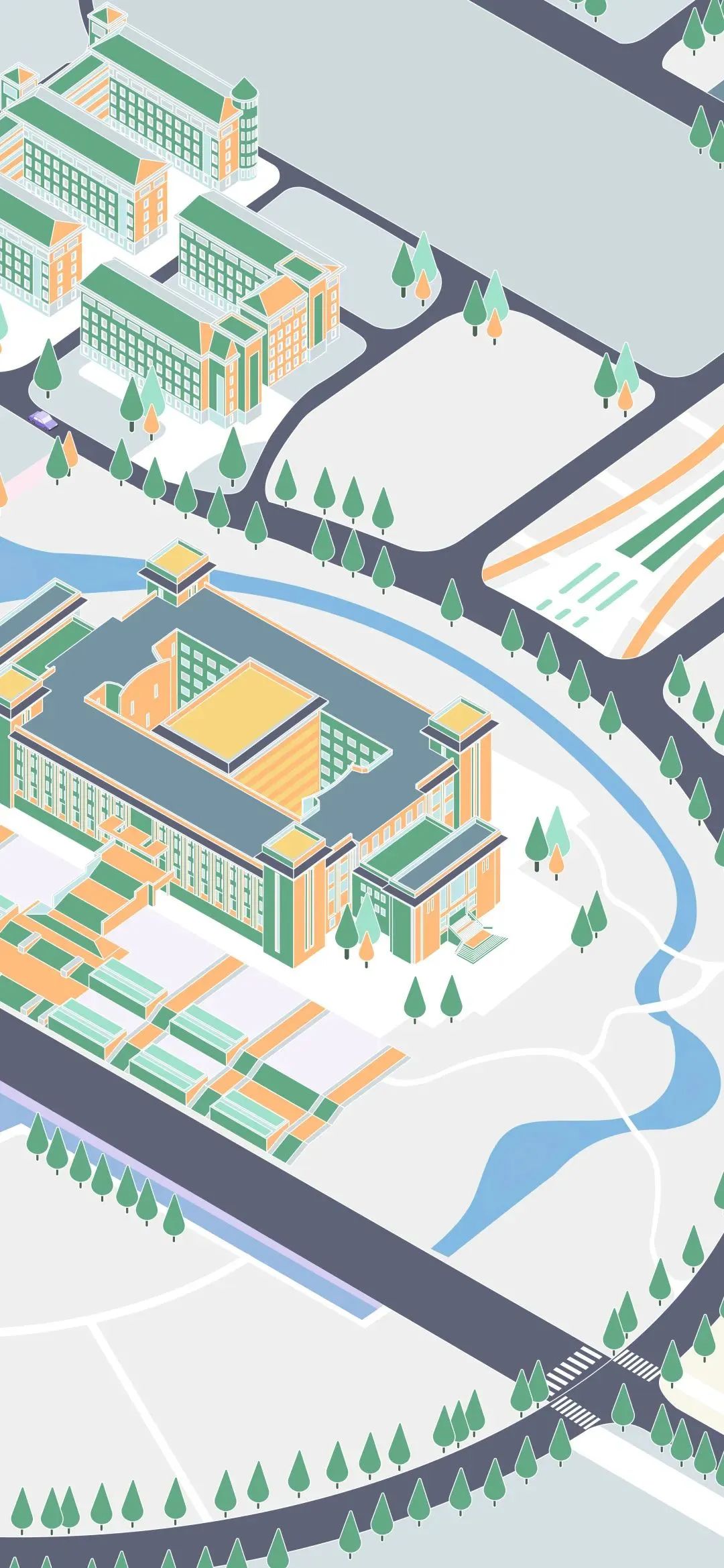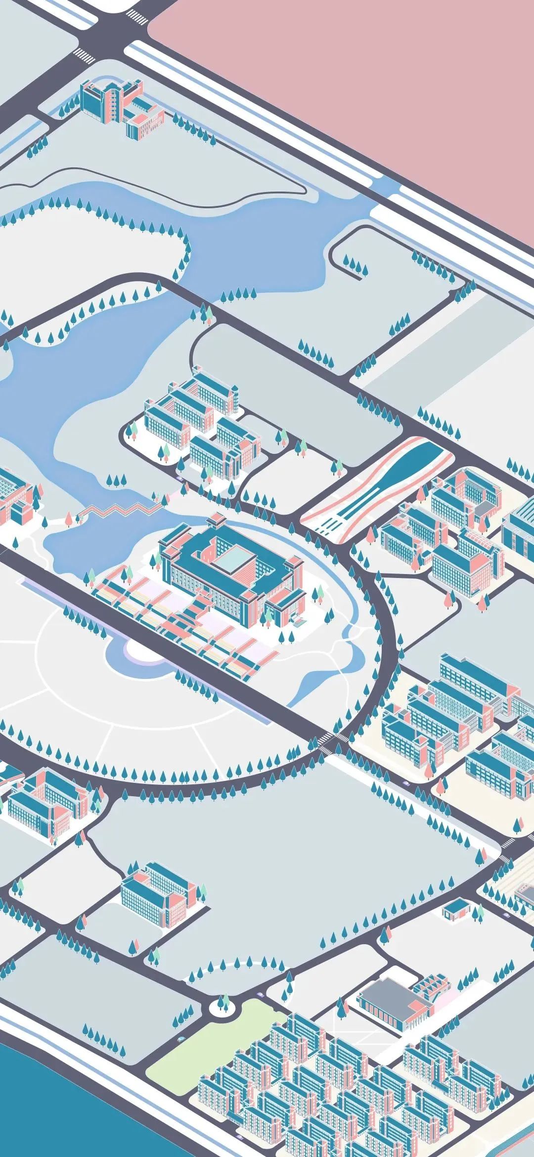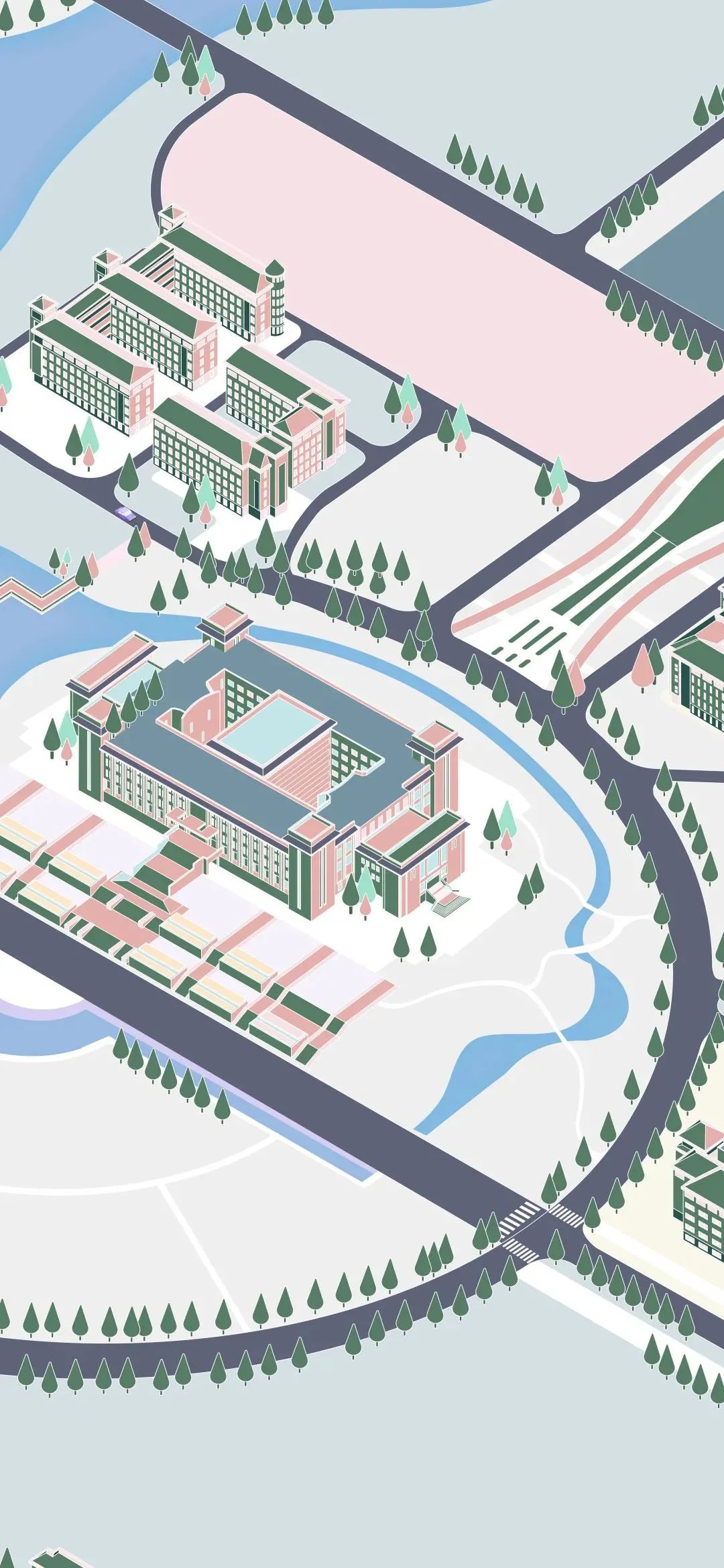 将校园建筑进行绘制,从2.5维视角探寻校园景色。也许无法一眼认出,但仔细体会,便会发现校园建筑不一样的风光。