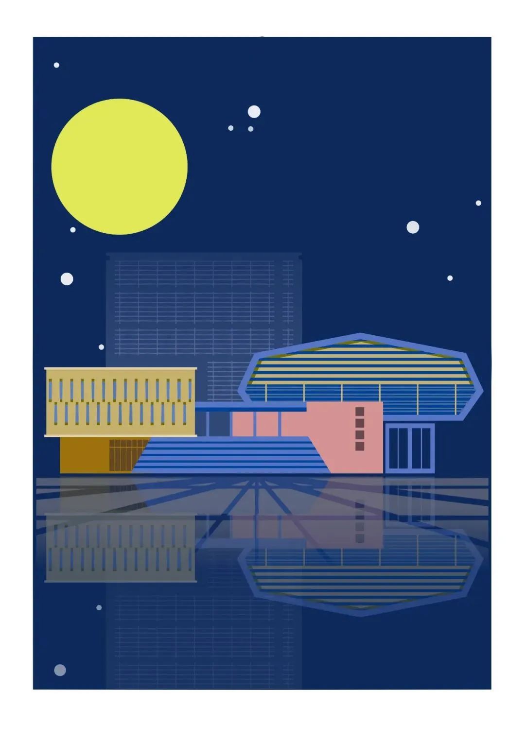 本设计希望绘制完全平面化的东大建筑,抽取出最简单的几何元素、色彩关系,还原同学们心目中的东大名建筑。