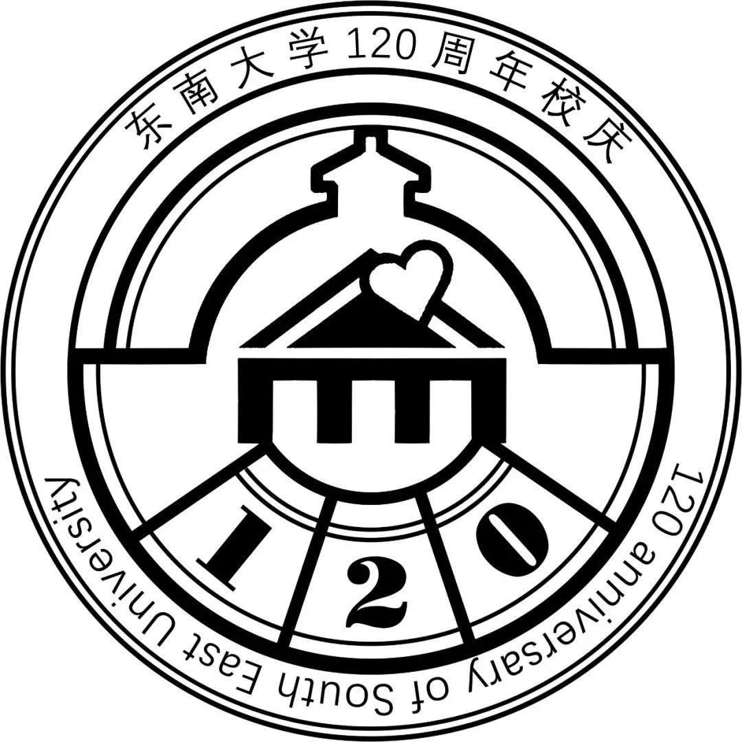 其次将标志性建筑解构重组形成新的LOGO图案,图案整体由“SEU”三个字母构成,整体形似“0”寓意圆满和谐。